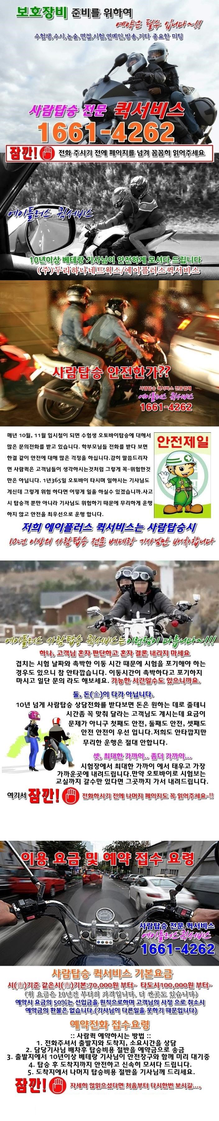 논술퀵 이용시 예약은 선택이 아닌 필수 입니다. 안전장비 준비와 안전을 위하여 미리 미리 예약하세요.