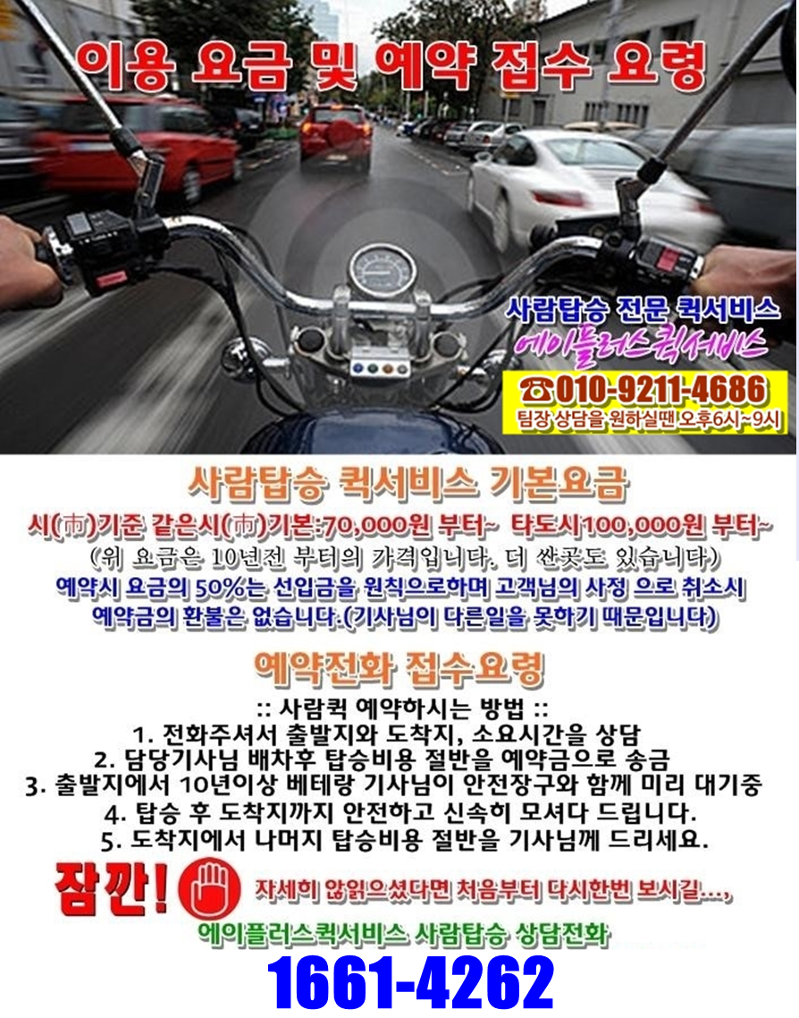 탑승전용 300CC 이상의 오토바이로 안전하게 모십니다.